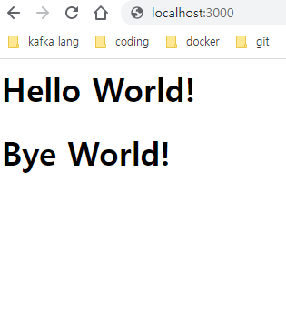const test_url = new URL(_url, "http://localhost:3000/"); //url 정보에서 pathname만 추출 let pathname = test_url.pathname; //routing -> pathname === "/test"이면 http://localhost:3000/test 이런 형식이다. if (pathname === "/") { //response.writeHead(<http status code>, <header info>) -- response header에 대한 정보를 기록한다 //처음에는 200, 404와 같은 http 상태코드가 들어가고, 헤더 정보에는 charset 정보나 //response의 형식 등이 적힌다. response.writeHead(200, { "Content-Type": "text/html; charset=utf-8" }); //본문에 내용 작성 (ex/ html이면 body) response.write("<h1>Hello World!</h1>"); //응답을 종료, 마찬가지로 내용을 작성할 수 있다. response.end("<h1>Bye World!</h1>"); } else if (pathname === "/test") { response.writeHead(200, { "Content-Type": "text/html; charset=utf-8" }); response.end("<h1>test page</h1>"); } else { response.writeHead(404); response.end("Not found"); }if 문을 통해 각 path name 마다 다른 로직을 처리할 수 있다.