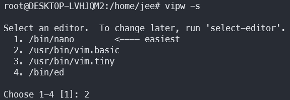 vipw 명령어를 사용하는 것이 좋다고 한다. 동시에 여러 사용자가 이 정보를 수정하려고 할때 발생하는 충돌을 막기 위함이라고 한다.