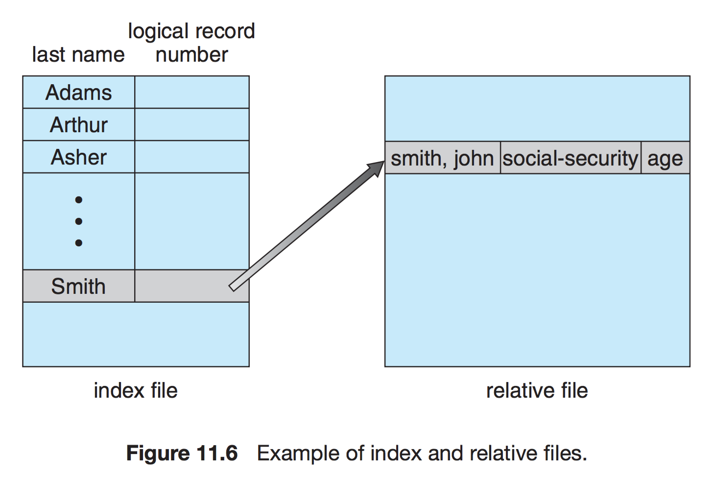 이러한 상대적 블럭번호의 사용은 운영체제로 하여금 파일이 어디에 저장되어야 하는지 결정하게 하고, 사용자가 자신의 파일이 아닌 곳에 접근하는 것을 미리 막는다.