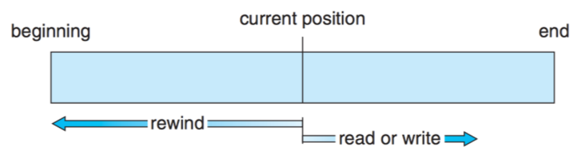 파일의 정보가 레코드 순서대로 처리된다. 현재 위치에서 읽거나 쓰면 offset이 자동으로 증가하고, 뒤로 돌아가기 위해선 되감기가 필요하다.