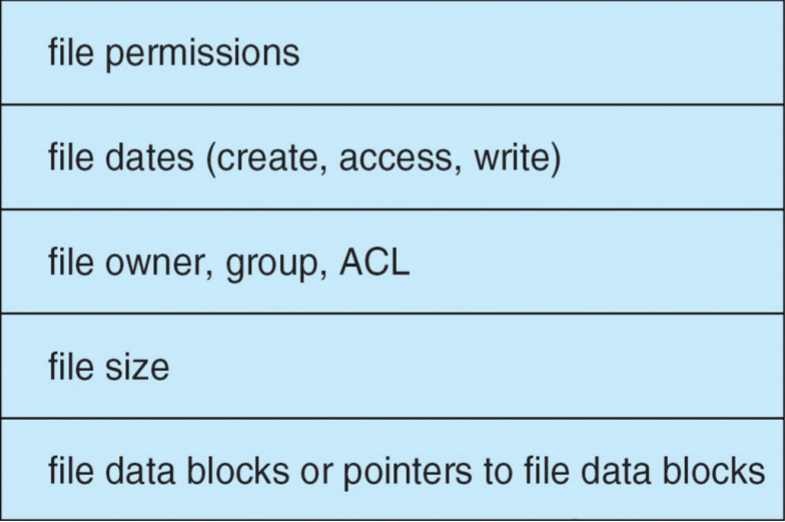 메타데이터 : 파일을 관리하기 위해 필요한 정보들을 말한다. 단, 파일 속 내용을 말하는 것은 아니다. 파일 이름, 유형, 저장된 위치, 파일 사이즈, 접근 권한, 소유자, 생성/변경/사용 시간 등 파일에 관련된 전반적인 정보를 말한다.