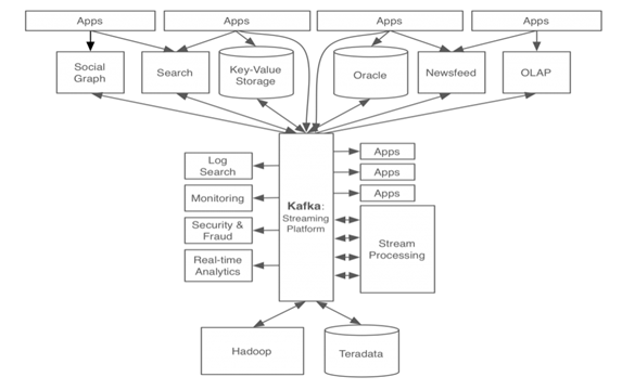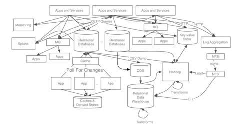 - 첫 번째로는 실시간 트랜잭션(OLTP) 처리와 비동기 처리가 동시에 이뤄지지만 통합된 전송 영역이 없으니 복잡도는 증가할 수밖에 없었다. 또한 문제가 발생했을 때, 조치를 취하려면 여러 시스템에서 확인해야 했다.