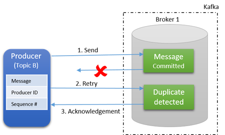 하지만 응답을 기다리는 경우, 메시지 전송 성공 여부를 응답으로 받는다. 이때, broker에서 메시지 전송이 실패한 경우에는, 설정해둔 재시도 횟수에 따라 재시도한다. 재시도 횟수를 초과한 경우에는 예외로 처리한다.