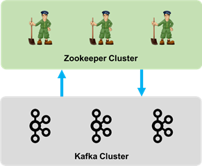 예를 들면, Kafka 클러스터를 구성하면 주키퍼에는 Kafka 클러스터의 식별 정보부터 현재 살아있는 Broker 정보, 나아가 권한 정보 등이 저장된다. 또한, Kafka Broker들 중 Controller Broker를 뽑는 역할을 담당한다.