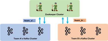 동일한 주키퍼 클러스터에 멀티 Kafka 클러스터를 구성할 수 도 있다.