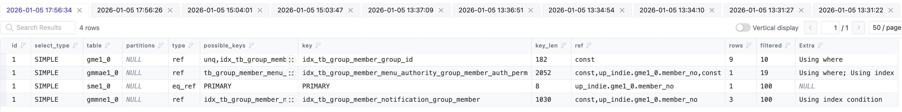 sme1_0,gme1_0,gmmae1_0,gmmne1_0)이 얽히면서 MySQL 옵티마이저가 비효율적인 경로를 선택하고 있었습니다.[문제의 쿼리]