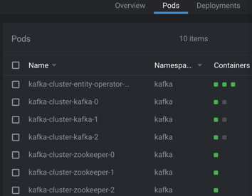 //-f 는 파일 위치를 지정해야한다. 작성한 CR의 yaml파일 위치를 지정하자. kubectl apply -f examples/kafka/kafka-persistent.yamlCR을 apply하면 operator가 그에 맞는 작업을 수행한다. kafka-persistent.yaml을 올리면 cluster operator가 정의한 내용을 바탕으로 kafka cluster를 생성한다.